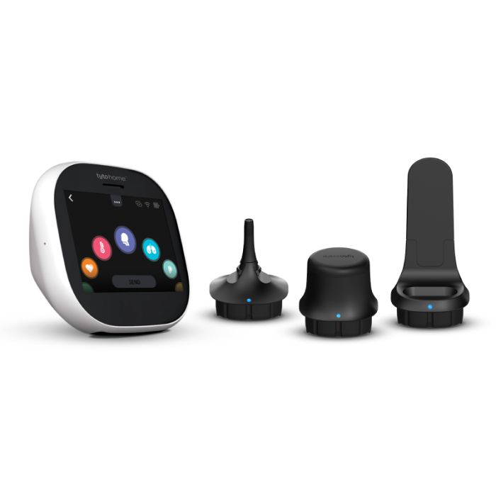 The TytoHome exam kit includes tools for examining the heart, lungs, throat, skin, ears, and